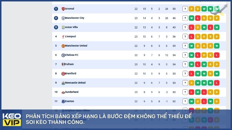 Phân tích bảng xếp hạng là bước đệm không thể thiếu để soi kèo thành công.